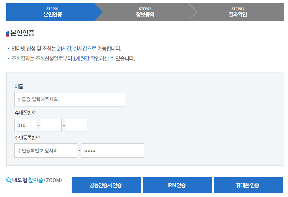 내보험찾아줌 이용 방법